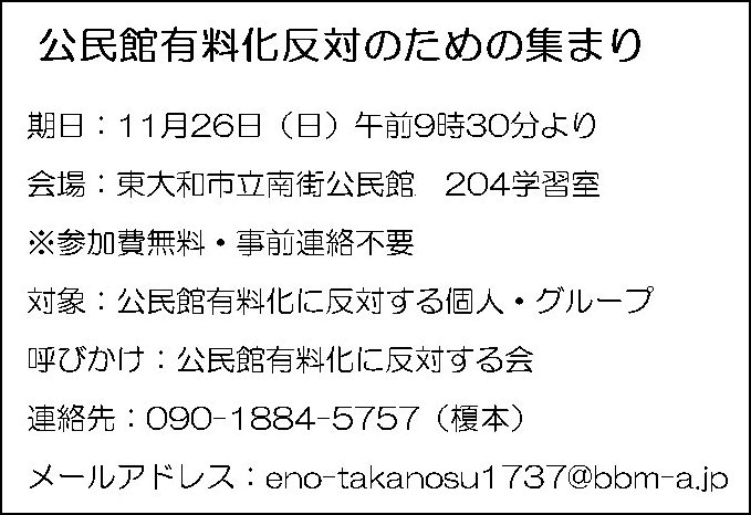 ★「公民館有料化反対だより 1号」を発行しました→こちらからご覧いただけます。